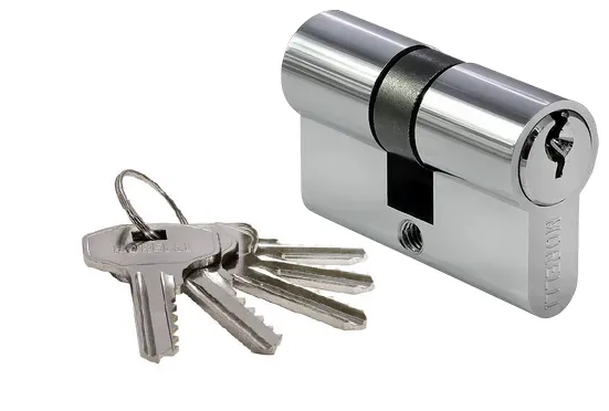 Ключевой цилиндр с заверткой для двери вставляется в замок или защелку для закрытия ключом с одной стороны помещения и поворота кноба с другой.
