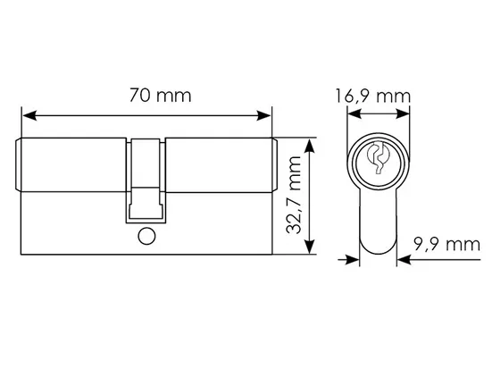 Ключевой цилиндр с заверткой для двери вставляется в замок или защелку для закрытия ключом с одной стороны помещения и поворота кноба с другой.